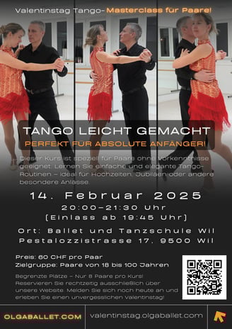 Reservieren Sie jetzt Ihren Platz für die Tango-Masterclass am Valentinstag mit Olga.
